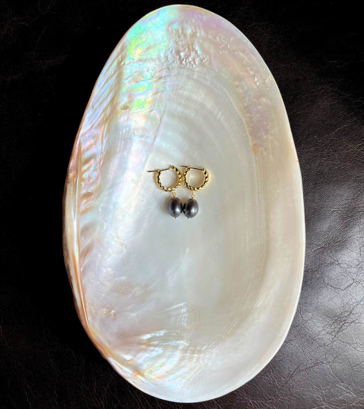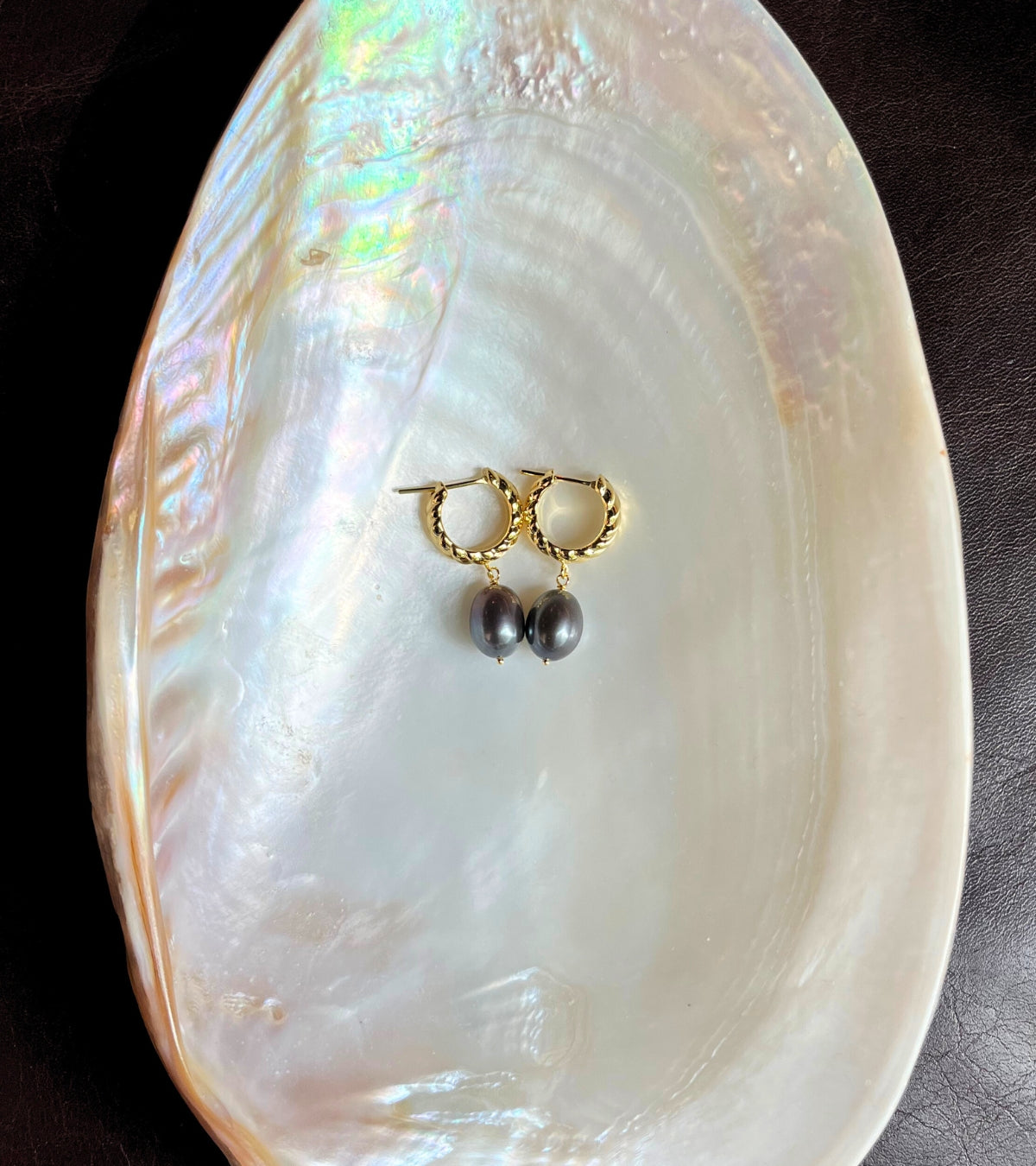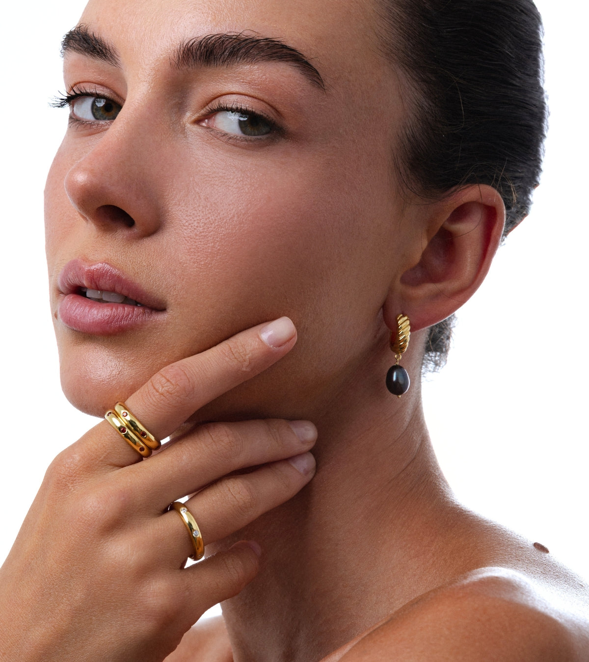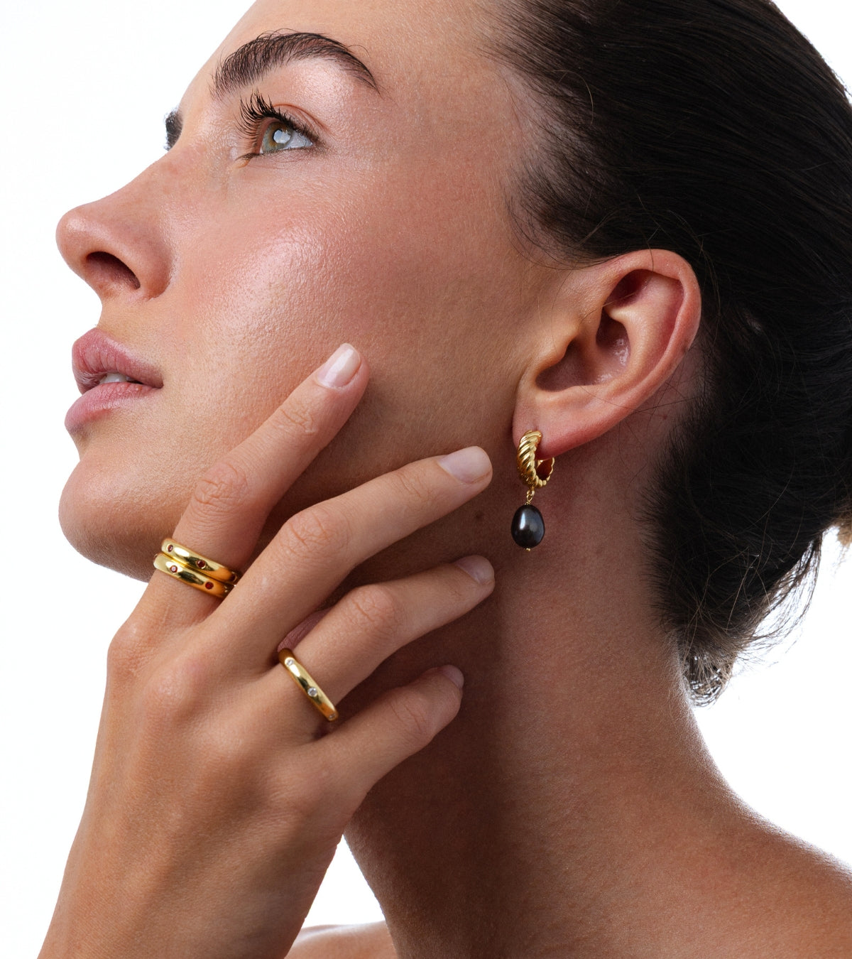 La Perle (Purple) is a modern heirloom with vintage charm. It features a ribbed gold hoop inspired by retro silhouettes, paired with a delicate drop of deep purple freshwater pearl, adding a soft pop of color that feels both nostalgic and fresh. Versatile enough for your everyday rotation, yet striking enough to stand out, this piece moves effortlessly from day to night.
