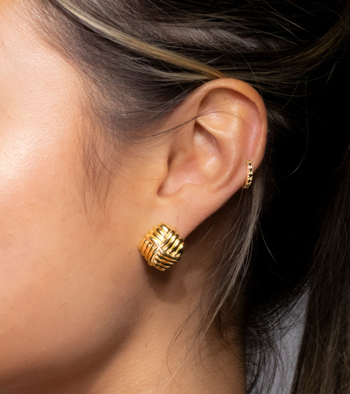 Inspired by the kind of earrings I used to secretly borrow from my mom’s jewelry box, Mom’s Borrowed Pair (Everyday Classic / Mini) is a refined nod to vintage elegance. With its softly domed silhouette and woven gold texture, this smaller, everyday-friendly version brings a touch of nostalgia to your lookideal for your daily rotation or subtle shine on low-key days.