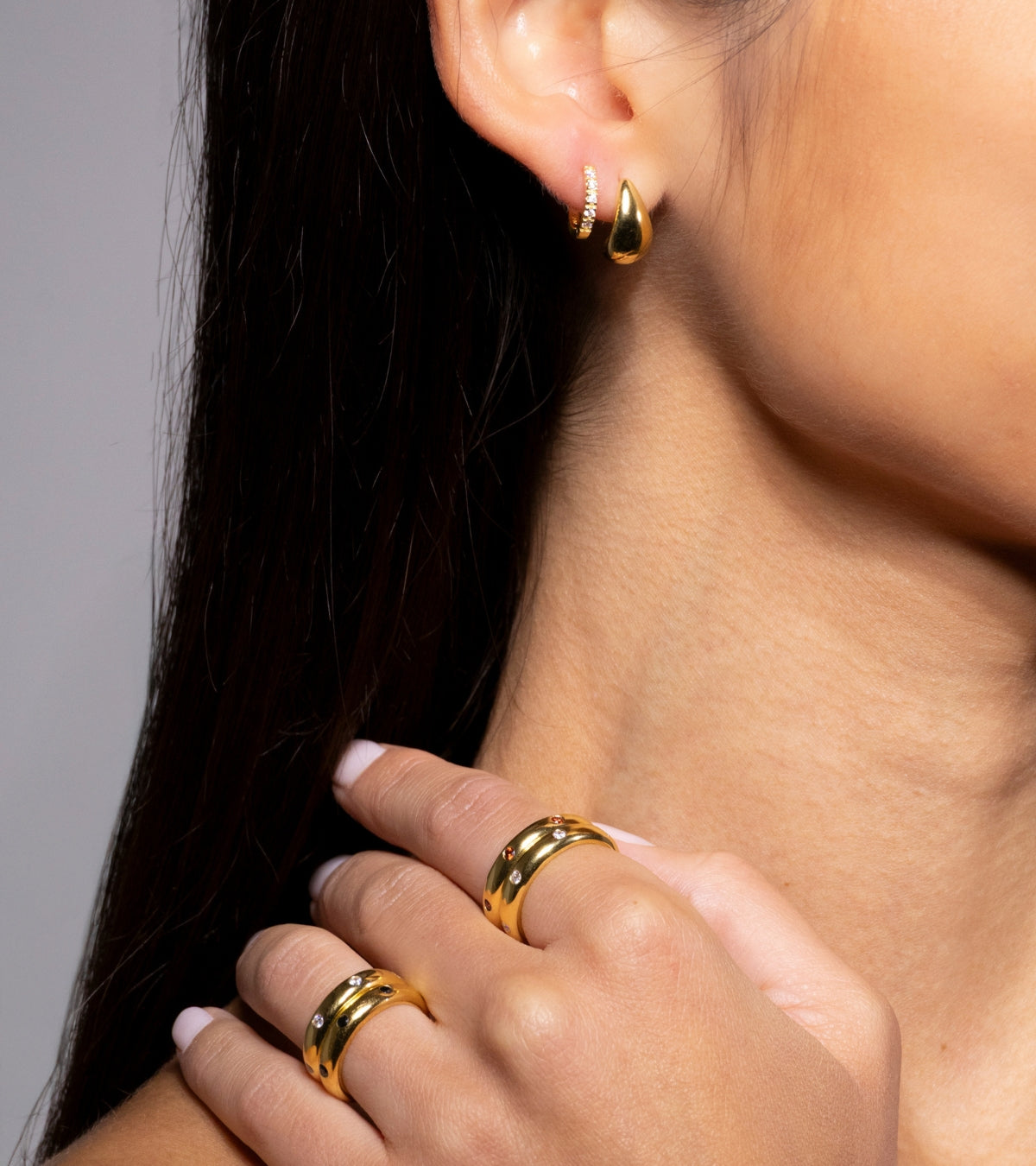 I LOVEEEEE these earrings! They have become my new go to earring, and are suitable for any occasion. They look great alone, or if you stack with other earrings, which has made them my new favorite earrings. The quality is also really great, I have worn them while working out, showering, and even in the sauna and they still shine. The other thing I love about these earrings is how comfortable they are. I typically need to take my earrings off, because they can get a little heavy and make my ears sore. I have not had to do that with these, which is AMAZINGGGGG. These are the perfect earrings if you're looking for a new simple, chic earring that you can take from morning to night.