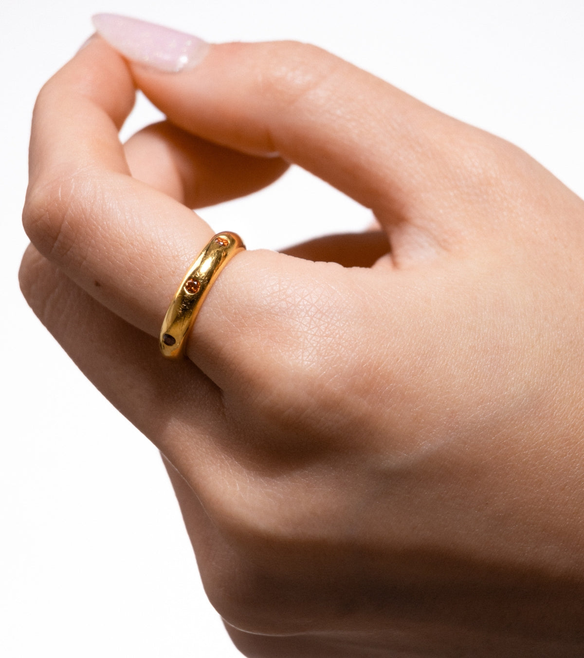 Subtle Spark is your everyday gold band – sleek, minimal, and accented with seven deep red stones, symbolizing passion, strength, and intentionality. Whether worn solo or stacked, it’s a striking reminder to lead with heart and carry power in everything you do.